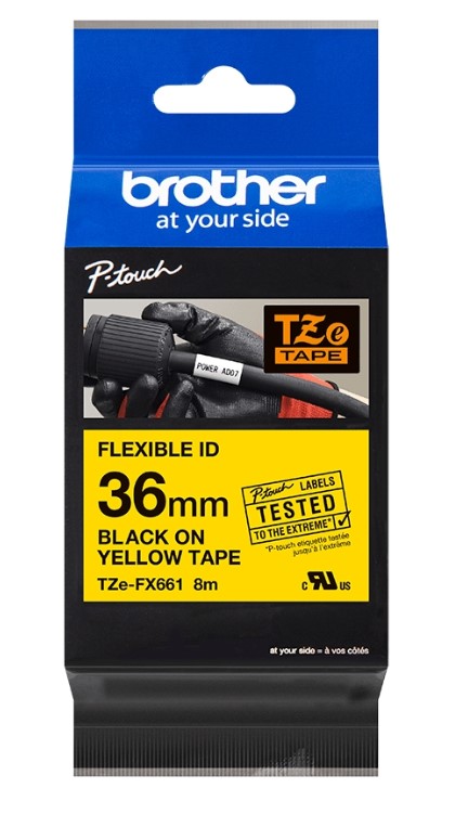 ORIGINAL Brother Ruban Noir sur jaune TZ-FX661 36 mm x 8 m, laminé
