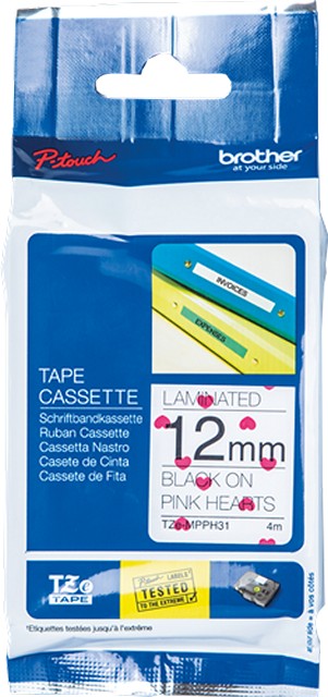 Ruban Noir sur Cœurs Rose de marque Brother (TZe-MPPH31)