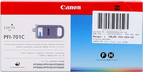Cartouche d'encre Cyan de marque Canon (PFI-701c)